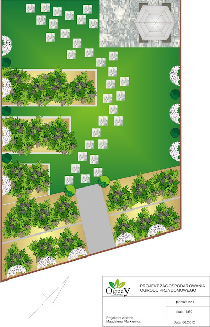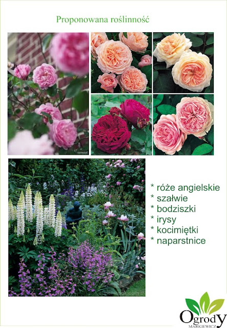 Wytyczne od Inwestorów: dużo pachnących , pełnych róż , styl ogrodu angielski jednak bardziej formalny,