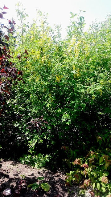 Z przodu krzewuszka, z tyłu żarnowiec.