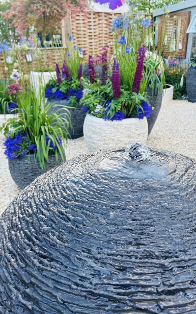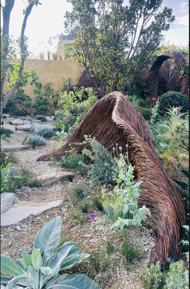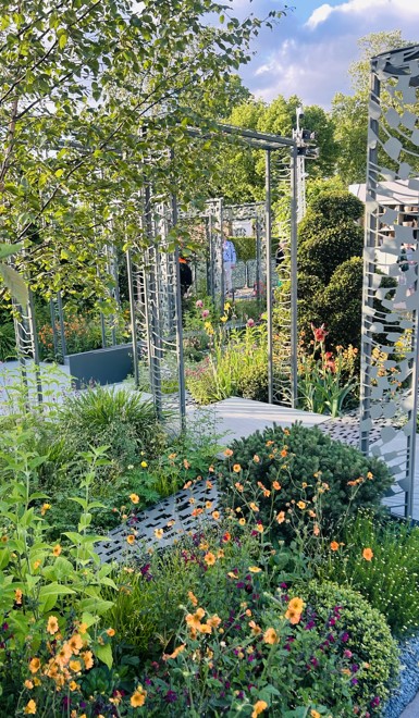 Spacerując po wystawie, zauważyłam że wielu projektantów stawia na ekologię i ogrody wodne, które pozwalają oszczędzać ten zasób natury. Na zdjęciach poniżej możecie zobaczyć ciekawe konstrukcje z „ogrodem na dachu”. Oprócz zapewniania cienia roślinom narażonym na bezpośrednie słońce, zbierają one, filtrują i magazynują każdą kroplę deszczówki, aby następnie oddać ją roślinom poniżej.