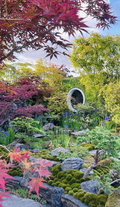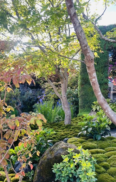 Na samym wejściu przywitał mnie ogród w stylu japońskim, zdecydowanie jeden z moich faworytów. Drzewka bonsai, piękne czerwone klony, wysepki z mchu, małe oczka wodne, a to wszystko w tonacji niebiesko/fioletowej. Długo nie mogłam oderwać oczu od tego ogrodu.