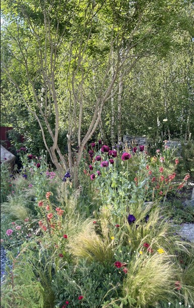 Będąc przy temacie ekologii, czymś na co również zwróciłam szczególną uwagę było dbanie o bioróżnorodność. Na samym początku dzikie założenia nieco mnie zdziwiły. Do tej pory miałam w swojej głowie obraz Chelsea Flower Show jako jedynie pięknie wypielęgnowanych, stonowanych, przystrzyżonych ogrodów. Tutaj jednak wiele założeń opierało się na dzikich kwiatach i wielokolorowych rabatach. Pozwalało to poczuć się niemal jak na spacerze wśród wiejskich pól. Uważam to za bardzo dobry krok w kierunku ekologii, natury i bioróżnorodności. Najbardziej zachwyciły mnie fioletowe maki!