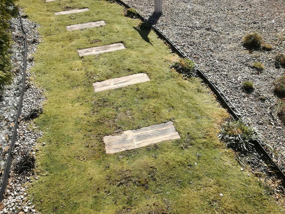 Ścieżka wykonana z karmnika ościstego po zimie nie wygląda okazale.