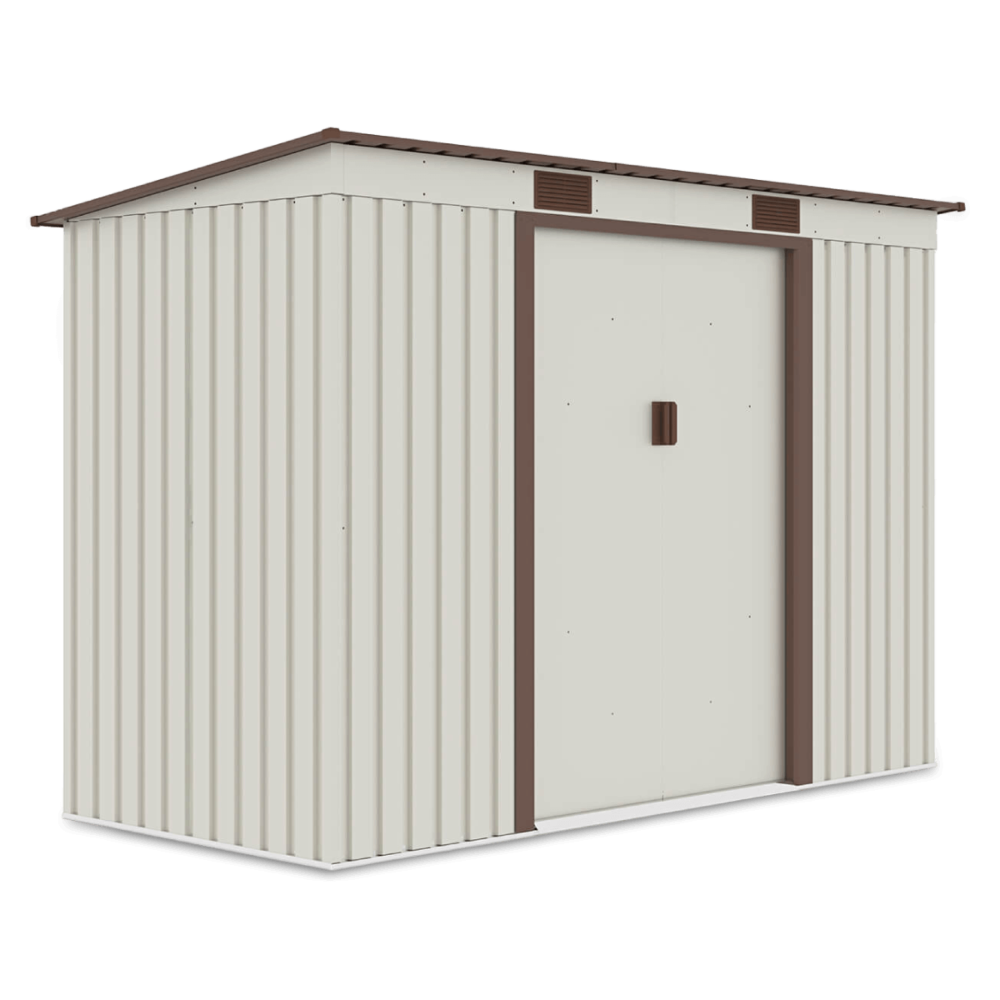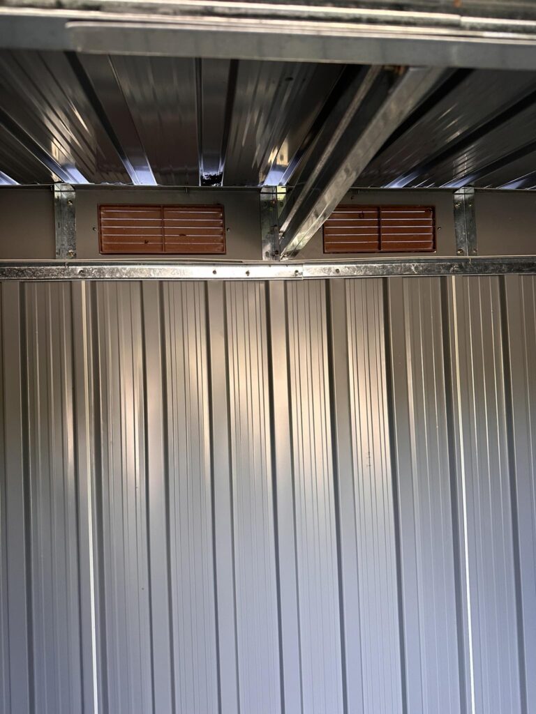 Domek narzędziowy OREGON Hardmaister składa się z wytrzymałej ramy i paneli metalowych tworzących ściany oraz dach. Konstrukcja jest oparta na stali, którą wcześniej ocynkowano. Oprócz tego blaszane panele poddano galwanizacji. To dzięki temu jest on skutecznie chroniony przed oddziaływaniem wody opadowej oraz promieni UV. Nie grozi mu korozja ani to, że straci swój estetyczny wygląd.