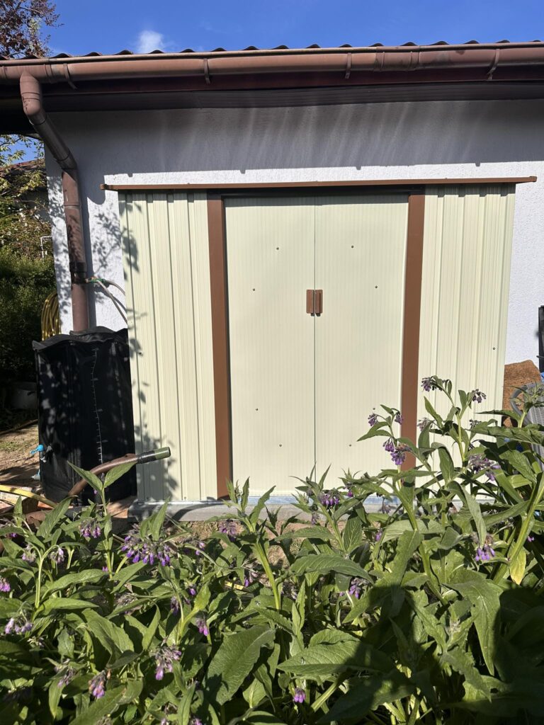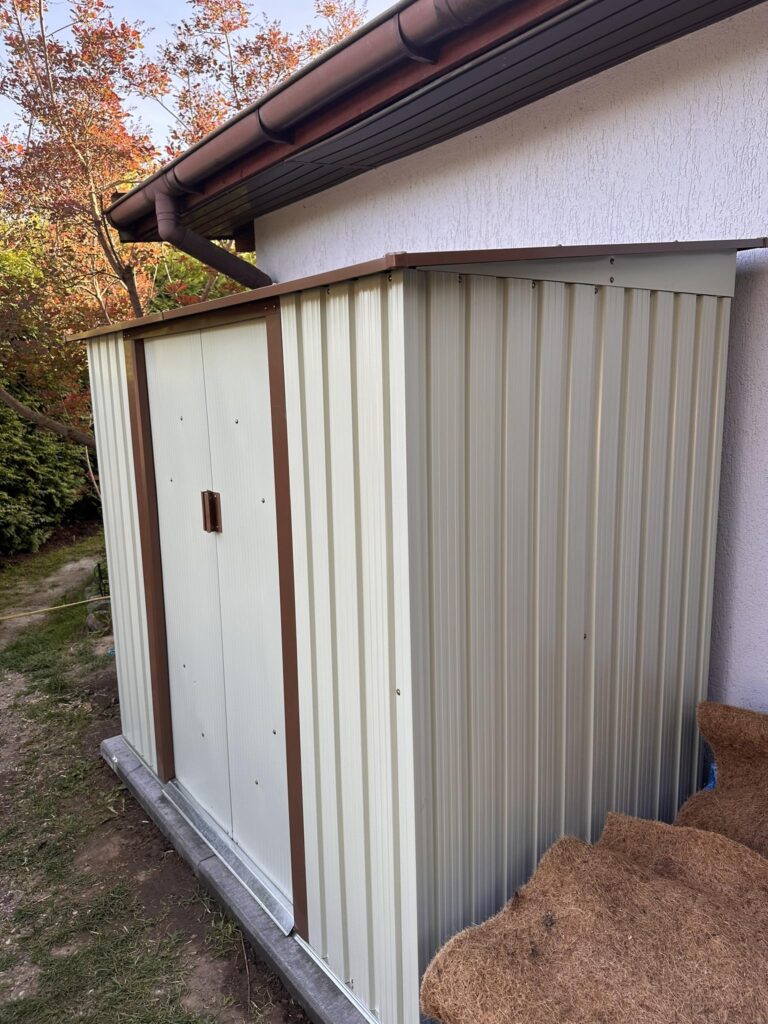 W ogrodzie nie posiadamy dużo miejsca na kolejne konstrukcje, dlatego szukaliśmy małego domku narzędziowego.