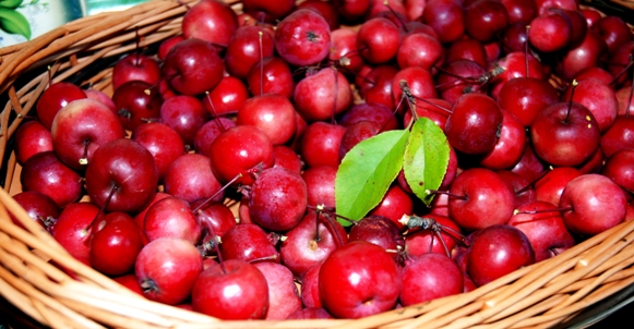 Mam w sadzie jabłoń ozdobną „Malus Ola” i w tym roku zadziwiła mnie ilością rajskich jabłuszek.