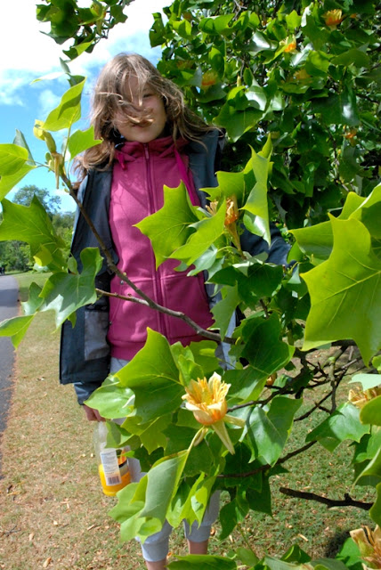 Poniżej zdjęcie mojej Karolinki z dorodnym okazem Tulipanowca