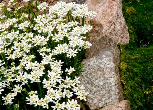 Pozostając w kolorze bieli podsyłam fotkę ubiorka wiecznie zielonego, który ulokował się na rabacie przy mojej pracowni. Krzewinka ta z roku na rok obsypana jest licznymi białymi kwiatuszkami. Jeśli zetniemy je po kwitnieniu, wówczas ponownie zakwitnie za kilka tygodni.
