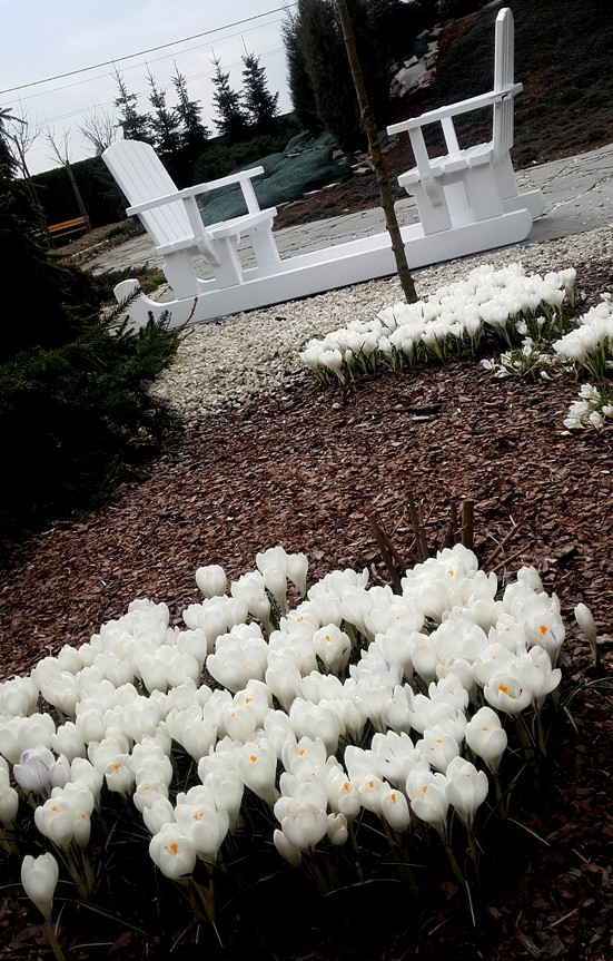 Białe sanie i krokusiki