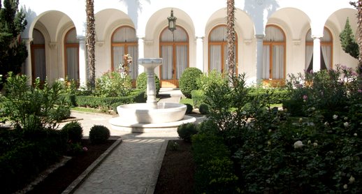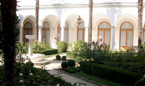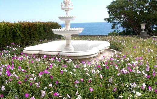 Centralnym punktem ogrodu jest oczywiście piękna śnieżnobiała fontanna