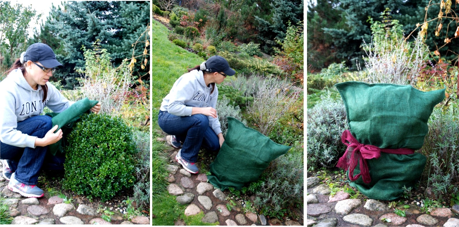 Okryłam również bukszpany kolorową jutą,