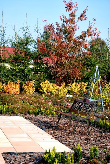 a to już jesienna odsłona ogrodu z kolorowym dębem w tle