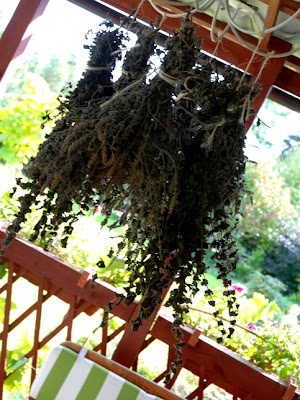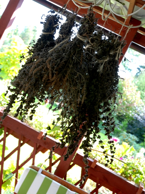 Część ziół suszę na werandzie – na zimę będę miała herbatki z mięty i melisy