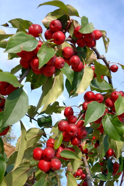 Nasza jabłonka rajska Ola, obrodziła tysiącem czerwonych jabłuszek,
