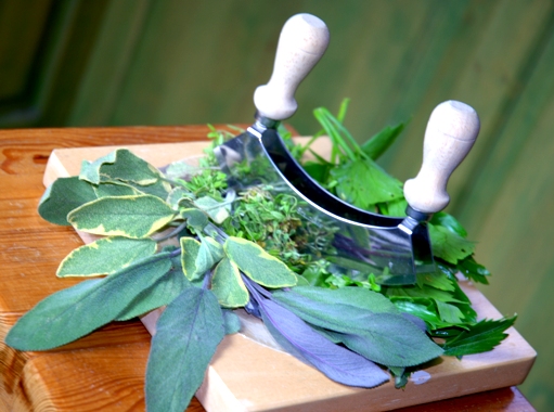 kroję zioła na drobny maczek, mieszam z solą i pieprzem dolewam oliwy
