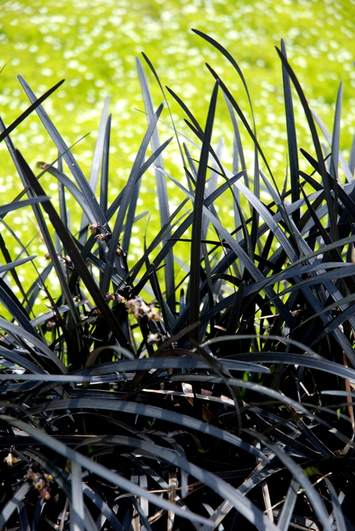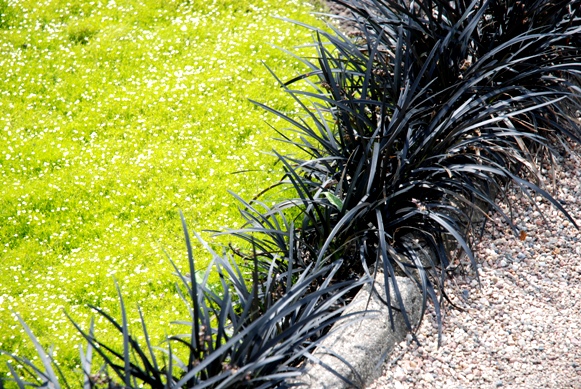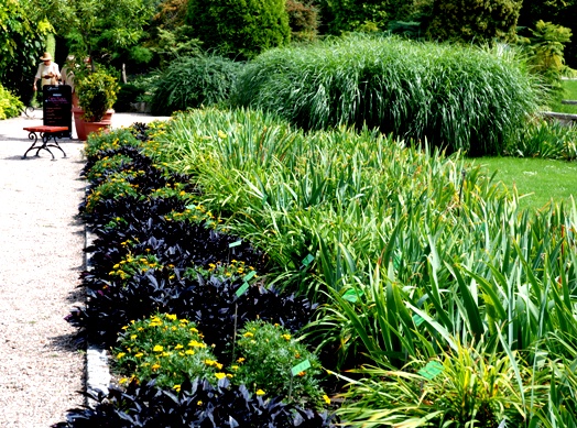 Ciekawe zestawienie roślin o ciemno-bordowych liściach ( wilec ziemniaczany „Black Tone”)