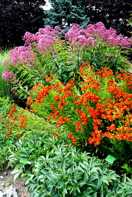 Poniżej Kirengeszoma Dłoniasta oraz Szkarłatka Jagodowa