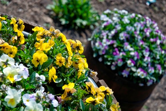 Takie kompozycje zagościły w drewnianych beczkach w ogrodzie wiejskim. Za kilka tygodni będzie tu kolorowo i zabawnie.
