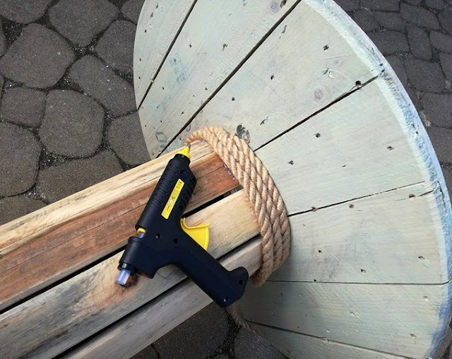 Następnie zakupiłam 30m liny, którą przykleiłam ściśle do drewnianego stelaża.