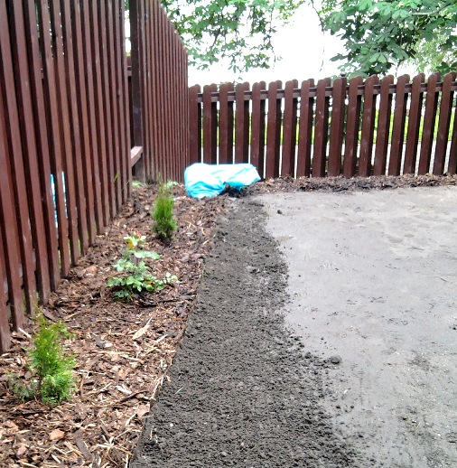 wytyczyć rabaty przy ogrodzeniu oraz postawić palisadę.