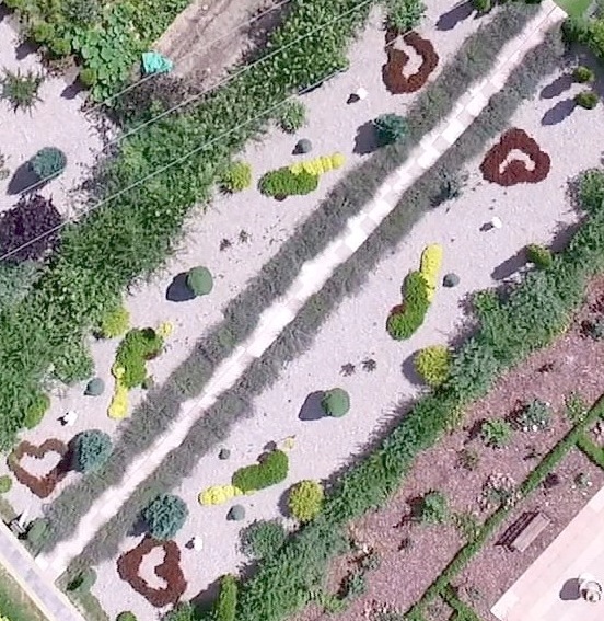 Zarysy serc zostały wykonane z miniaturowych berberysów bagiatelle.
