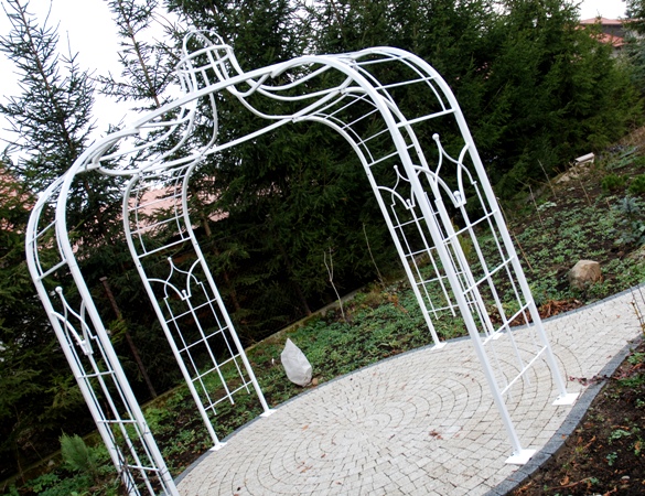 oraz czarna, ażurowa konstrukcja, po której będą pięły się winobluszcze