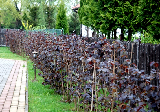 a po przeciwnej stronie rząd czerwonej leszczyny