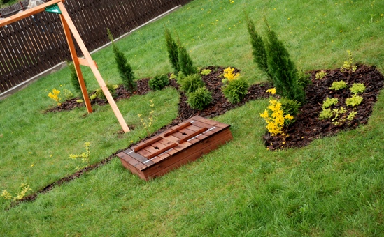 przyjazny zakątek dla dzieci z piaskownicą i huśtawką