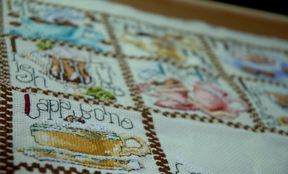 Podniosłam sobie troszkę poprzeczkę i wyszywam go na tkaninie lnianej