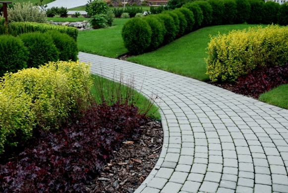 Obrzeża rabat fantazyjnie zaprojektowane.