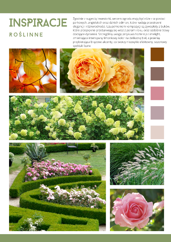 w stylistyce formalnej, jednocześnie czerpiąc z klasycznych odniesień, zwłaszcza w wydzieleniu kwater na róże i hortensje.