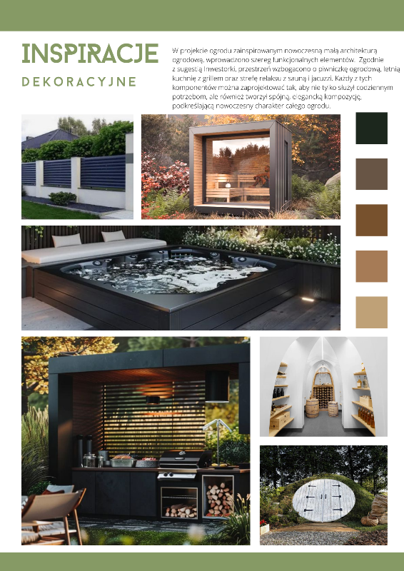 Projekt ogrodu został opracowany z myślą o stworzeniu funkcjonalnej i estetycznej przestrzeni, która harmonijnie współgra z istniejącym budynkiem mieszkalnym oraz garażem. Inspiracją była sugestia inwestorki, która postawiła na nowoczesny design