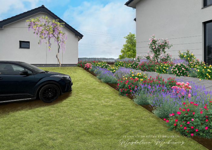 Ogród nowoczesny z różanką