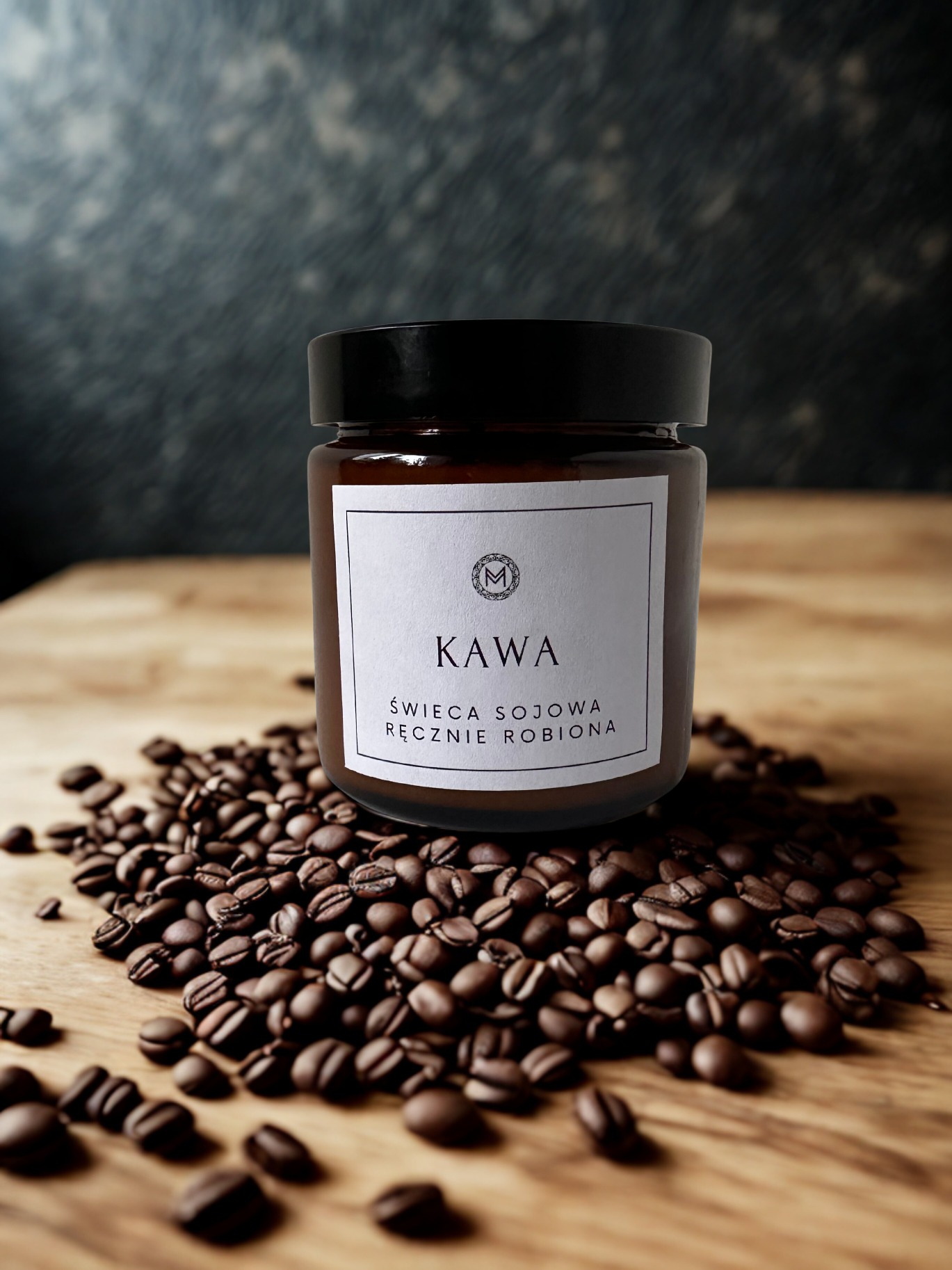 - ręcznie wykonana świeca z naturalnego wosku sojowego z dodatkiem naturalnego olejku o zapachu kawy,